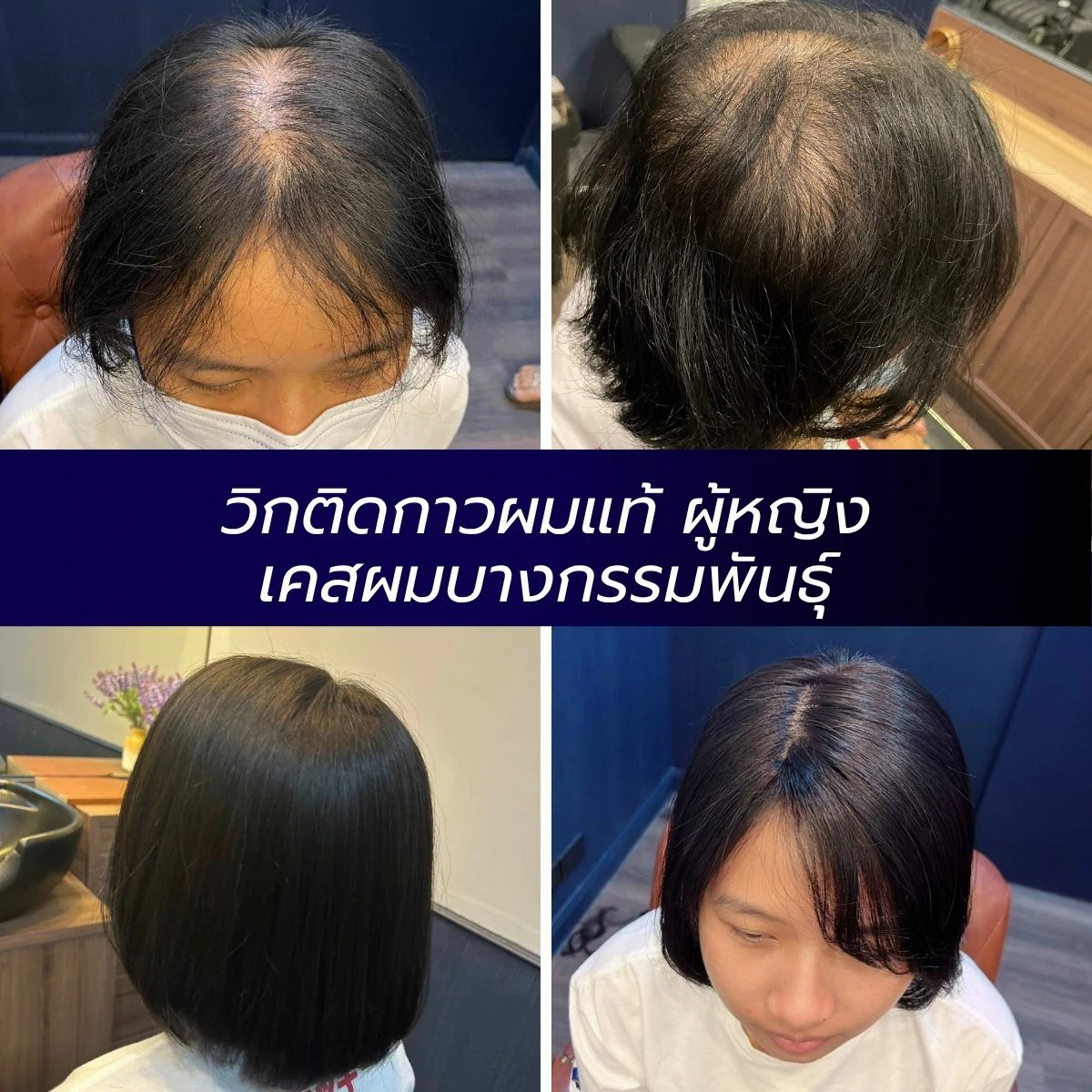เคสนี้มีปัญหาผมบางตรงกลางเนื่องจากกรรมพันธุ์ วิกที่ทางร้านออกแบบให้เป็นงานขึ้นโมลด์ตามรูปศีรษะ ทำให้สวมใส่ได้พอดีแป๊ะทุกจุด และเรายังออกแบบขนาดเส้นผมและสีผมให้ใกล้เคียงกับผมเดิมของลูกค้า ทำให้หลังใส่แล้วดูเป็นธรรมชาติเข้ากับบุคคลิกมากที่สุด สามารถใส่นอน ใส่ว่ายน้ำ หรือทำกิจกรรมต่าง ๆ ในชีวิตประจำวันได้โดยไม่ต้องกลัวหลุด